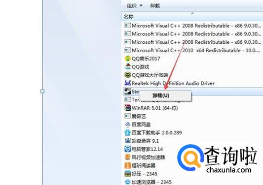 接着鼠标右键点击steam软件,之后再点击【卸载】按键,这样就能卸载电脑上的steam软件了。