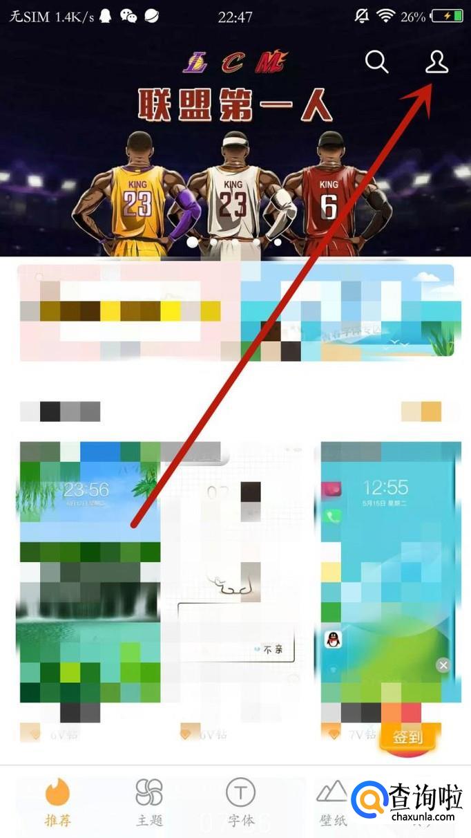 进入手机“i主题”,点击图示按键进入个人中心,如图所示。