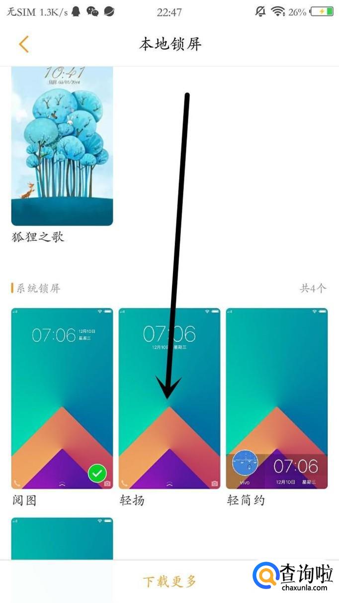 选择一个其他的锁屏,如图中“轻扬”点击一下进入