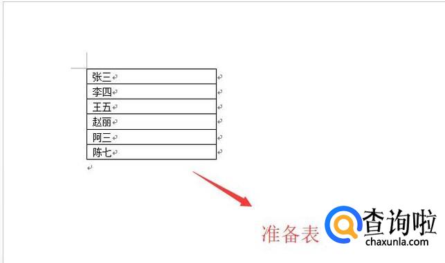 首先打开word软件,准备一个表格,只有一列数据即可,如下图所示