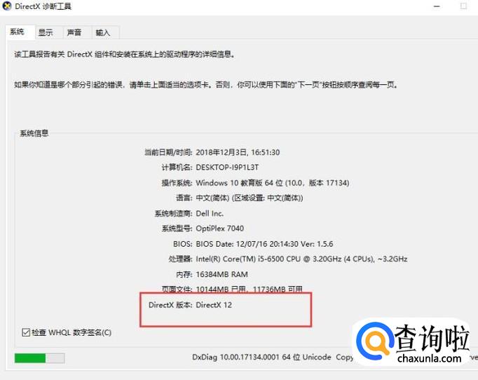 然后在弹出的界面中我们就可以看到Directx版本了,如下图所示