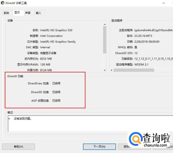 最后如果想查看Directx的启用情况则可以打开显示页卡,如下图所示