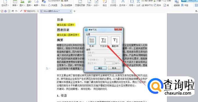 点击后会出现一个设置页面,然后点击中间的“下沉”,再“确定”