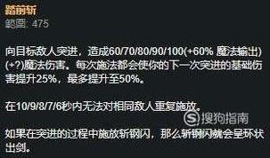 亚索的E技能是一个突进技能,突进到敌方英雄身边,造成逐步提升的魔法伤害。每一次施法都可以增加下一次的猛冲伤害25%,最高可以达到100%,但是无法在10/9/8/7/6秒内向同一个敌人再次施放。