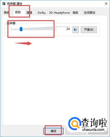弹出的界面,我们点击级别,然后将声音向右滑动,确保声音打开,这样就可以了,如果这样不行的话,那么我们的声卡应该就是出问题了,那个只能去找人专门帮我们进行更换修理了。