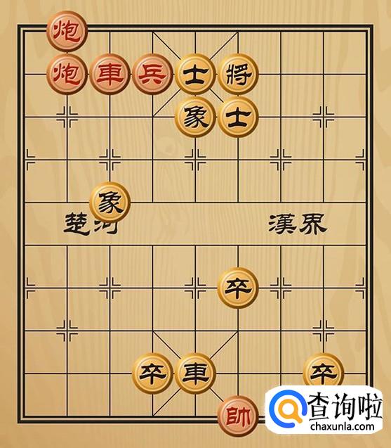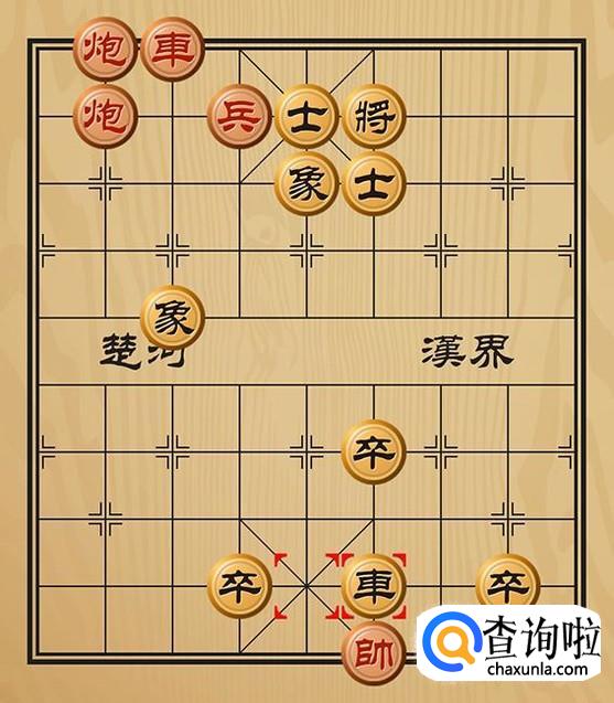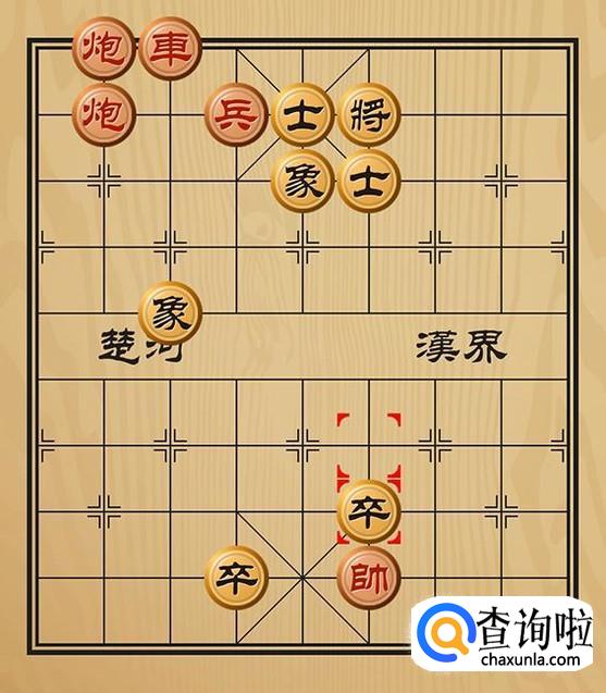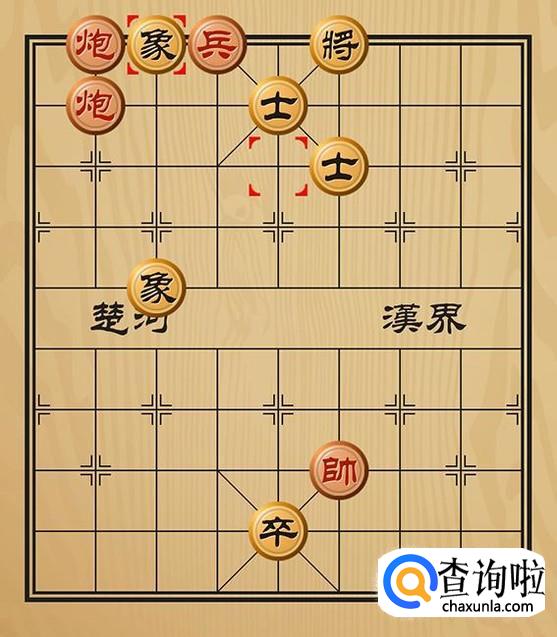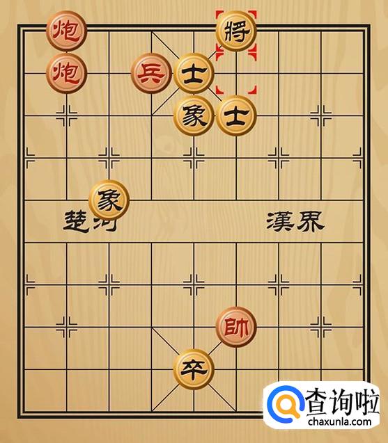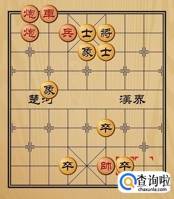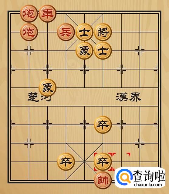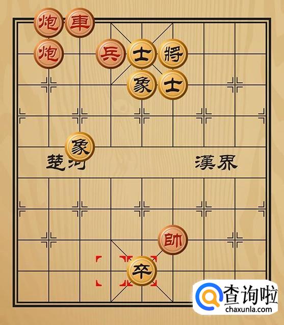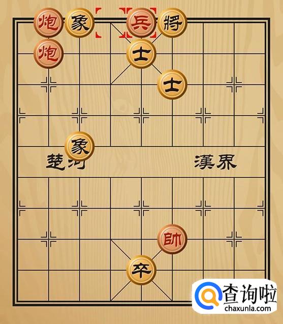红方兵六进一将军,黑方只能象5退3阻挡。