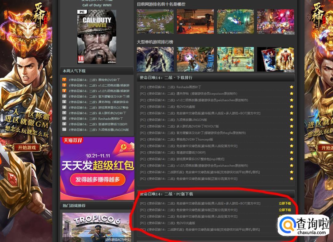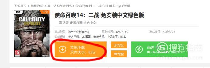 如下图,有很多版本的“使命召唤”。选择“使命召唤14:二战”。