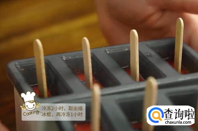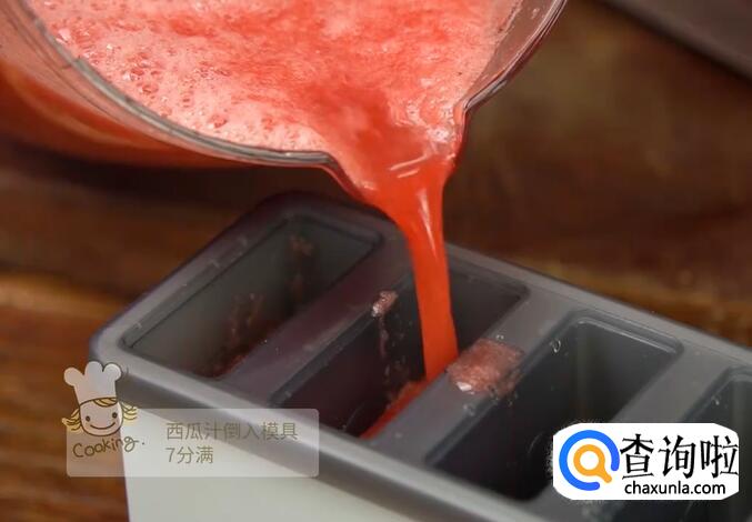 西瓜汁倒入冰棒模具,7分满。