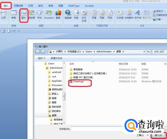 现在,打开需要插入CAD图形的Word文档,点击“插入”,“图片”,然后选中刚才保存的CAD图形,点击“插入”。