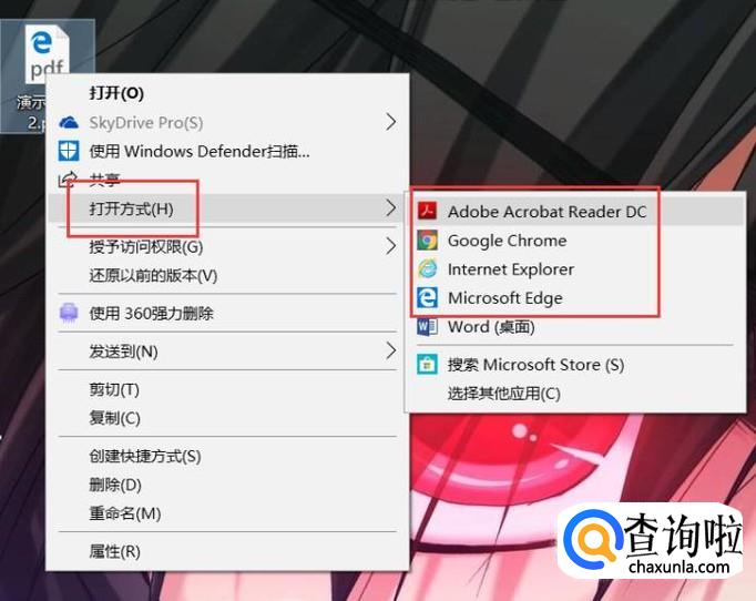 右键单击加密的PDF文件,在“打开方式”中选中合适的软件。