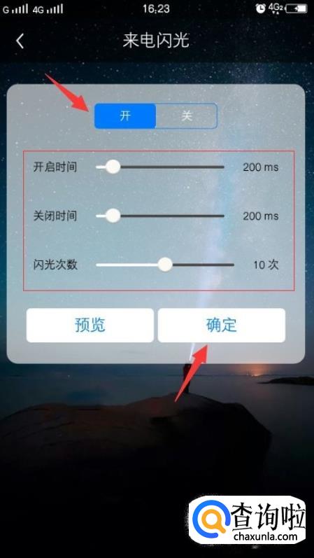来电闪光中设置开启时间、关闭时间和闪光次数,这些设置按照个人需求进行设置即可,理解起来也没有那么复杂基本能看懂。
