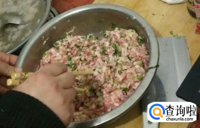 首先将新鲜的五花肉洗干净,剁成肉馅,并且加入葱末、姜末、盐,一通搅拌均匀。