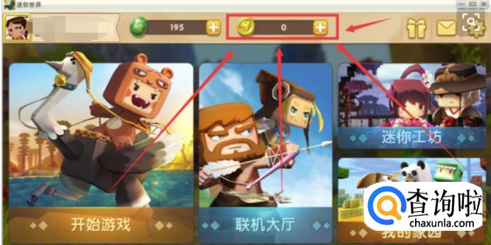 首先我们要打开手机“迷你世界”,然后在首页点击“金币”图标旁的加号。