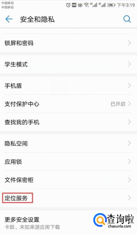 之后弹出的界面,我们点击定位服务;
