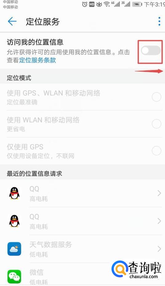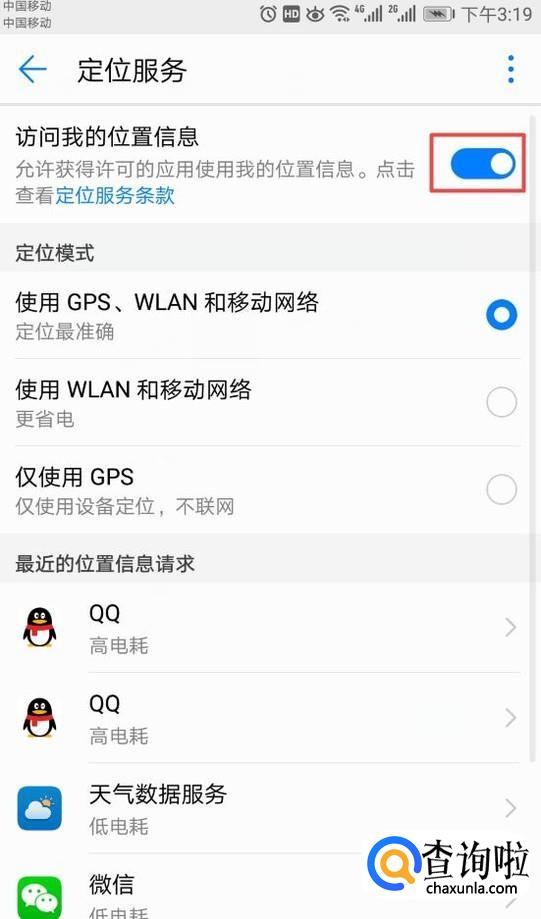 滑动完成后如图所示,这样我们就开启了我们的定位功能了。