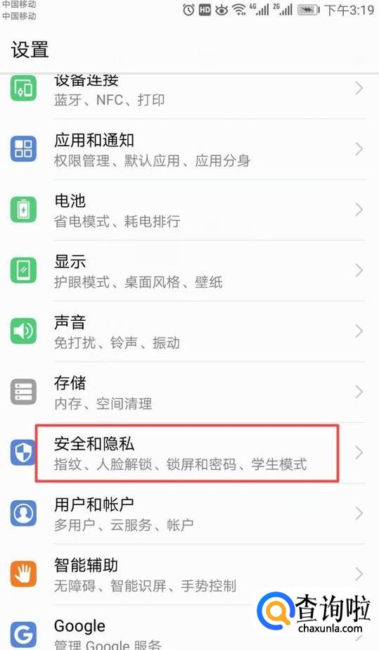 进入设置之后,我们点击安全和隐私;