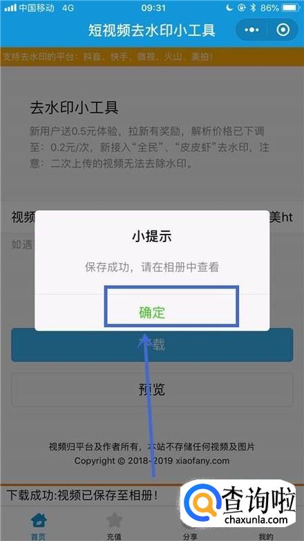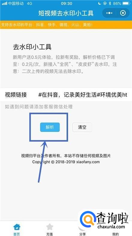 接着将抖音短视频的链接粘贴进去,如下图所示。