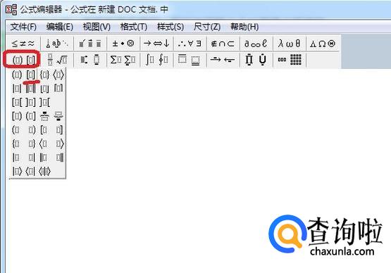 先输入矩阵外面的方括号,点击图中括号图标,可以看到第一行第二个就是矩阵外面的方括号形式,我们点击一下输入。