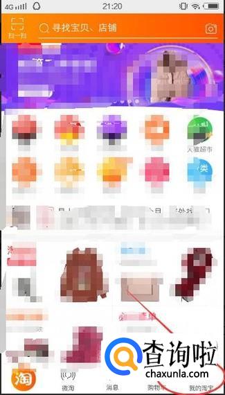 打开淘宝app,然后点击【我的淘宝】选项卡,如下图所示: