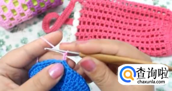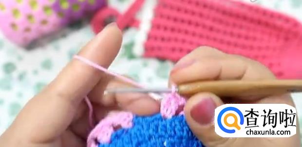 又穿过下面的大洞眼钩两个长针。