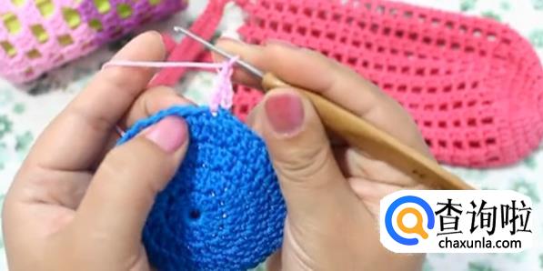 抽紧线头 最后一针与第一针引拔合并,一个孔钩两针,共24针 引拔合并。
