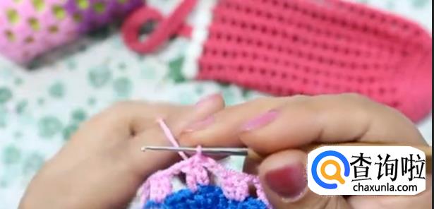 钩好后在穿过旁边针眼钩个长针。