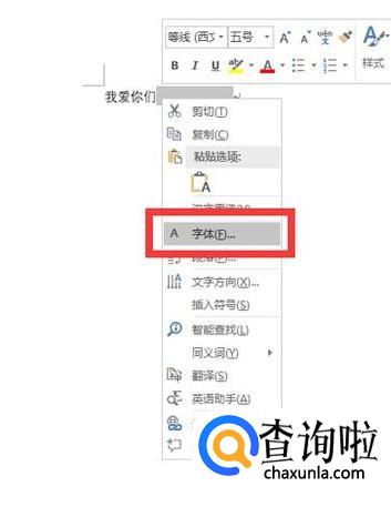 选中需要输入下划线的空格键部分,点击鼠标右键,选择字体。