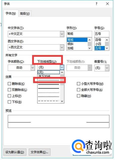 在“下划线线型”中选择一种线型后,点击确定即可。