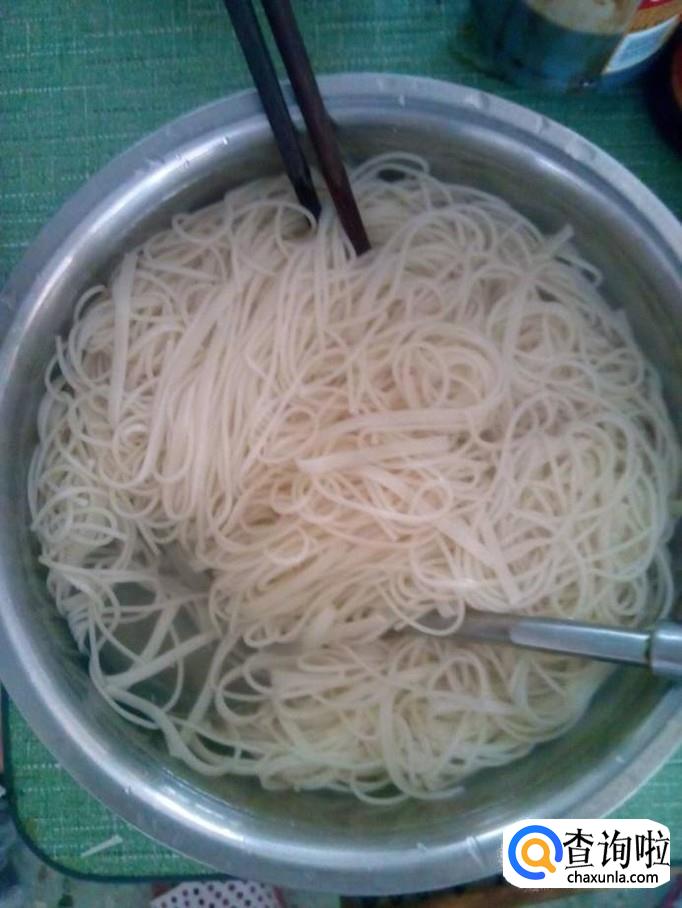 锅中加入适量冷水,水开后下入面条,面条煮3分钟左右之后捞出,过一下冷水,将面条放凉。