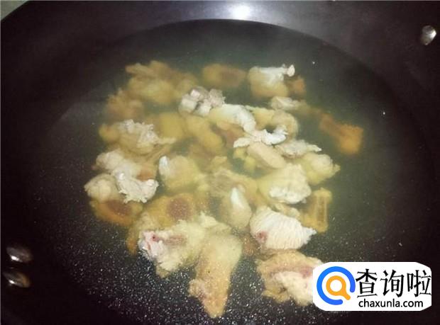 热锅下油,放入姜片煸香,然后倒入烫过水的排骨,快速翻炒均匀。