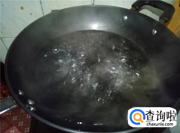 锅里烧开一锅水,水开后倒入几滴陈醋,然后把清洗好的猪小排倒下去,大概烫三分钟,即可捞起来。