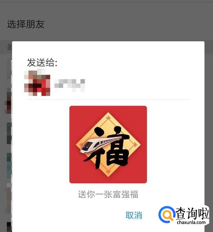 然后选择朋友点击发送就行了,或许你的朋友刚好就差这张卡就可以集成五福到的终极卡呢。