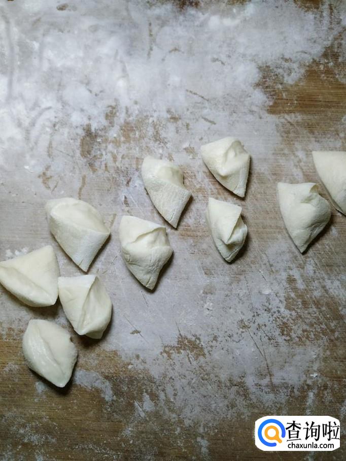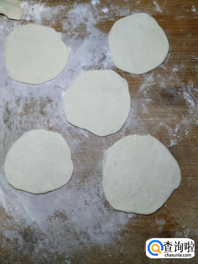 将揉好的面团,分成小剂子,擀成圆形的薄片。