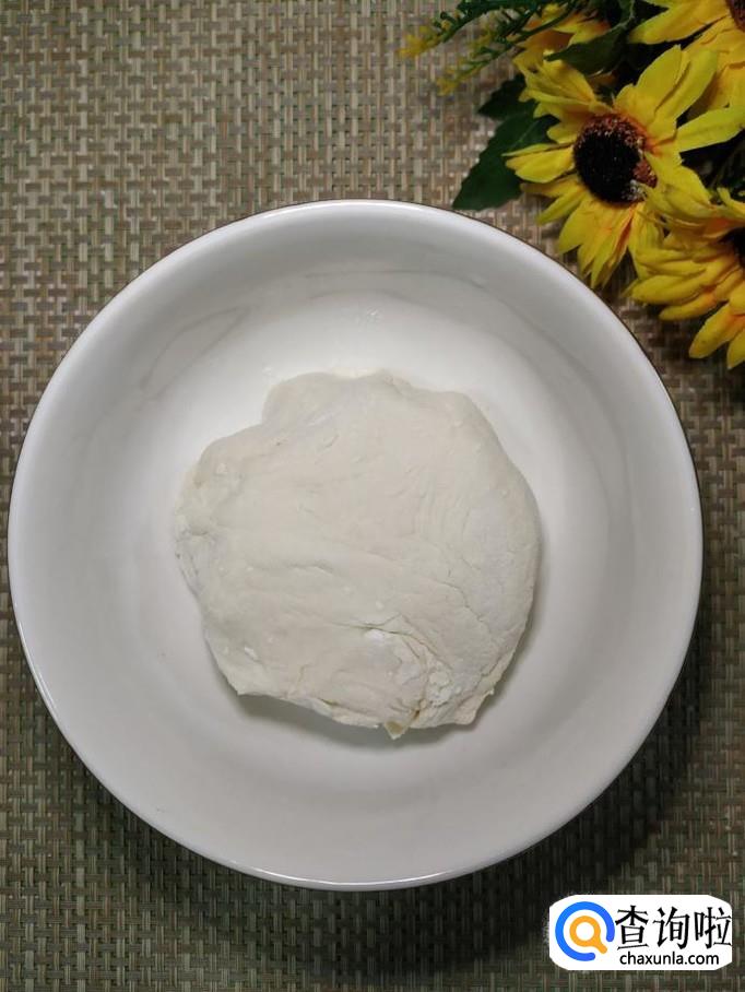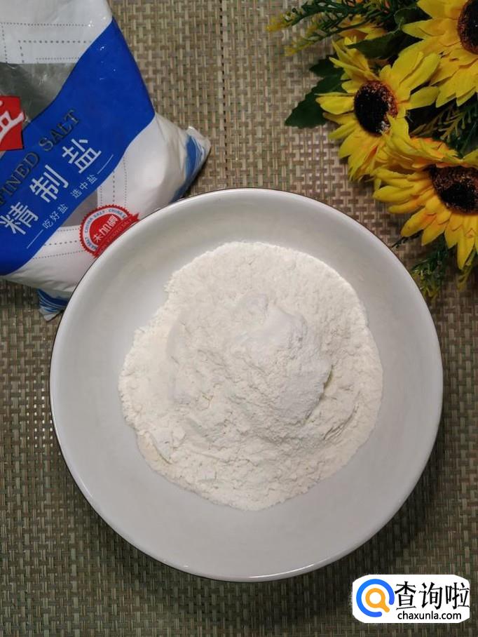 放入适量面粉,再加入两克食盐,用温水和成光滑的面团,加盐的目的是为了让做好的饺子口感更筋道。