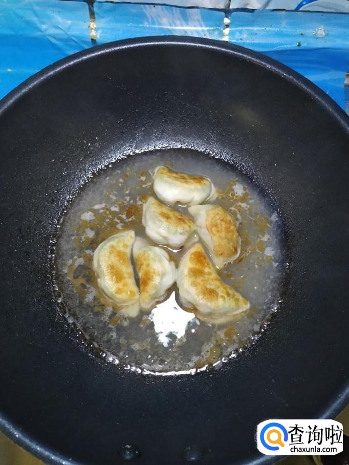 加入少许清水,清水的量基本上能够没过水饺,盖上锅盖,小火慢炖。