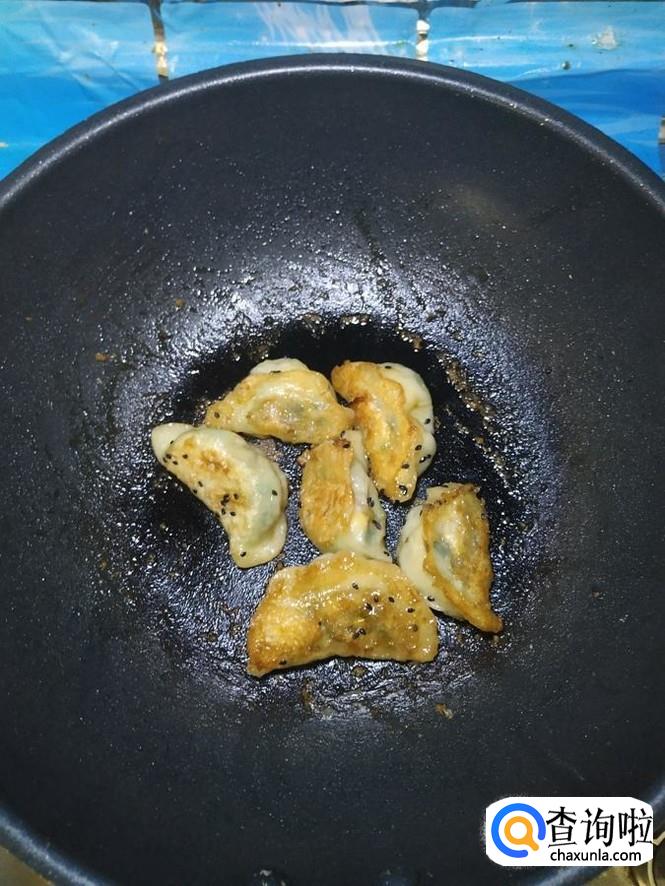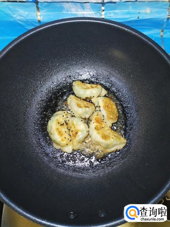熬至汤汁快收干的时候,撒上黑芝麻,继续收干,最后饺子出现漂亮的金黄色。