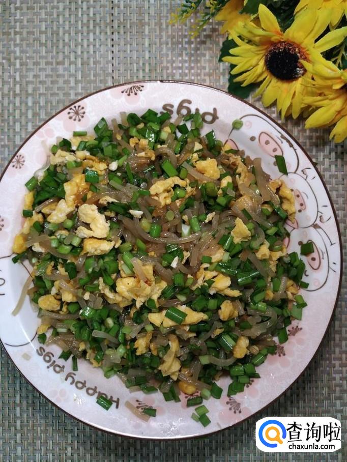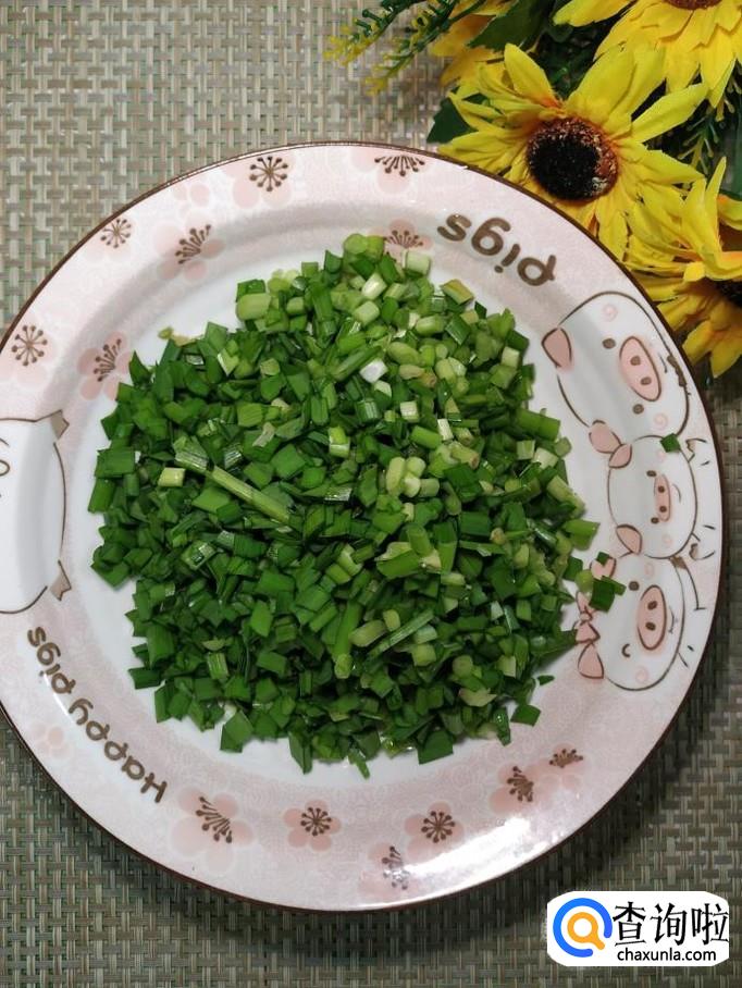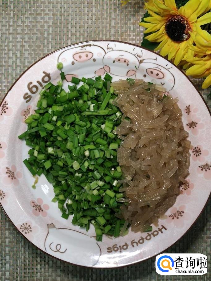 准备适量韭菜,洗净后切碎,再准备适量粉条,用温水泡发后切碎,和韭菜放在一起备用。