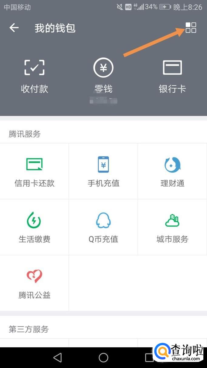 打开钱包后,点击右上角的正方形,如下图。