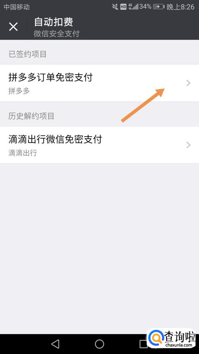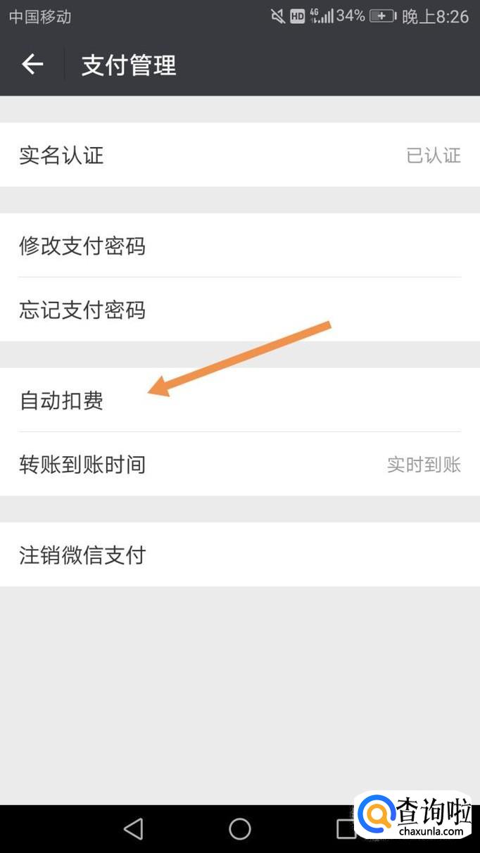 点击支付管理后,里面会有一个自动扣费选项,如下图。