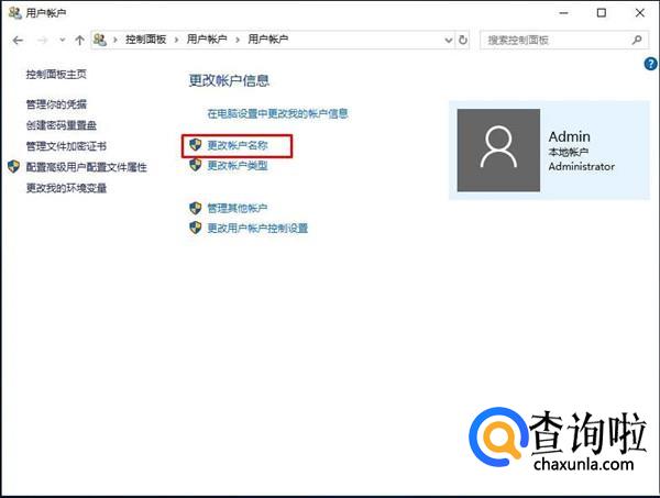 点击【更改帐户名称】这一项。