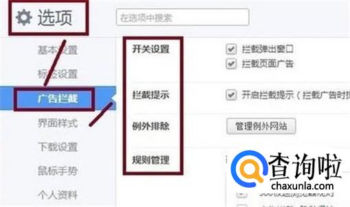 如果电脑没有病毒的话,我们可以在浏览器的设置中,将屏蔽广告选项勾选,这样我们就能摆脱网页弹出广告的事情发生。