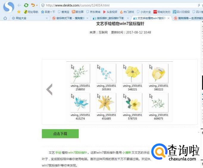 然后小编随便选择了一个网站,点击进入。点击鼠标指针,就得到了如下结果,大家可以看到有许多的样式,那就选择自己喜欢的样式进行下载。