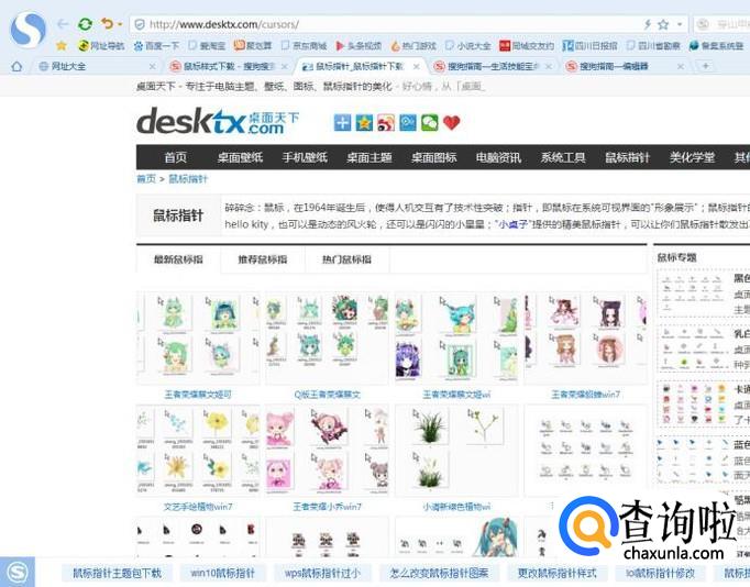 我们需要的是一个自己喜欢的鼠标样式安装包,大家可以在各个网站进行搜索和下载。这里小编用的是搜狗浏览器,输入鼠标样式下载进行搜索。得到如下结果。