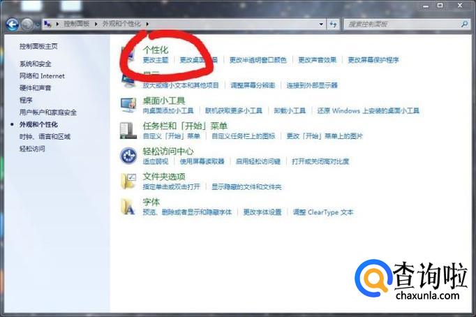 接下来就是设置过程了,我们打开控制面板。选择外观与个性化。接下来在页面点击个性化。