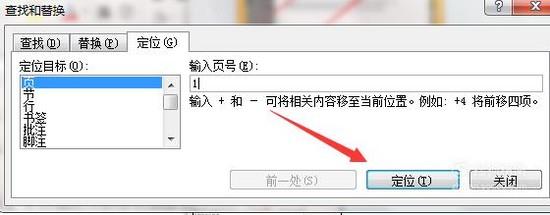 在替换选项点击第三个“定位”,然后在下面选择定位目标为“页”。如果页面比较多的话,可以在里面直接输入页号就可以了。如果页码少的话,用前一处和下一处选择页码就可以了。