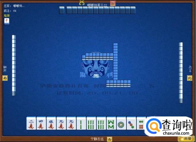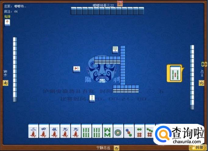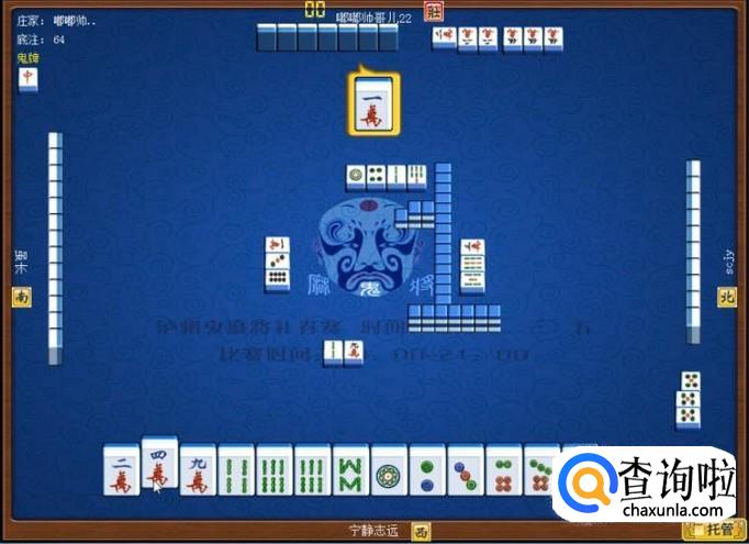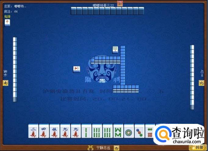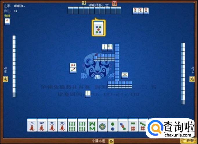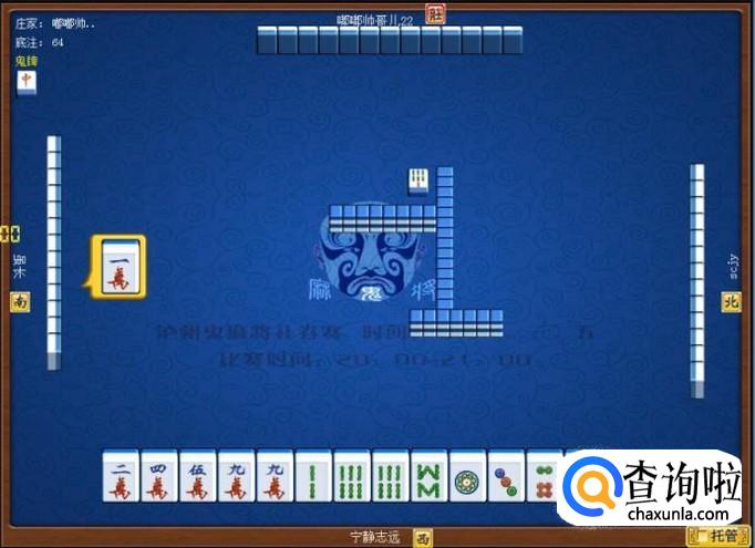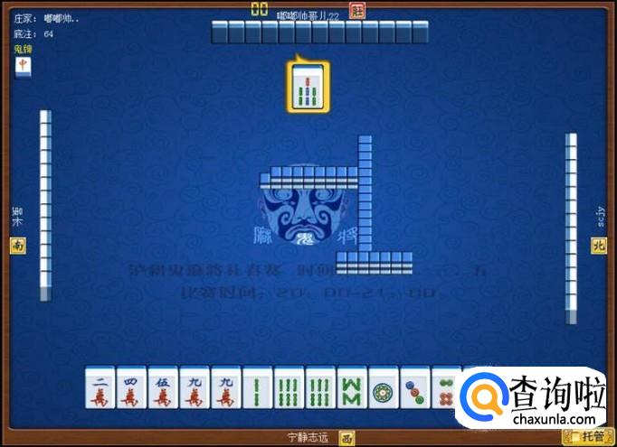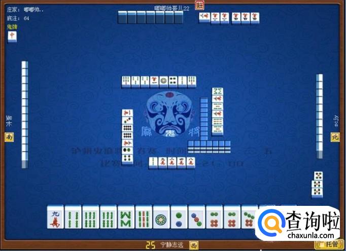 庄家和玩家通过机器桌洗牌,形成了顺风顺水牌局,庄家和玩家将在即将进行的顺风顺水牌局中,鬼斧神工,血战到底。如图所示。