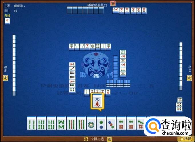 下家摸牌打八条,庄家摸牌打七条,顶家摸牌打四筒。本家摸牌,本家摸到了九条,正好和手里的九条组成一对。于是,本家打出九万。这样,本家就打缺万字这门牌了。如图所示。