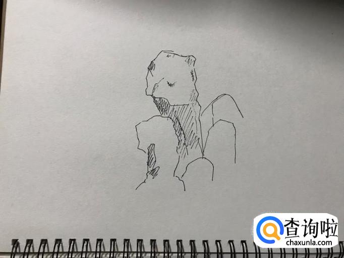 首先我们要绘制最重要主峰,绘制三块左右,中间的一块最大,要绘制出石块的阴影。然后其他两块石头要显得矮小一些。你在绘制的时候要设定迎光面,亮的部位不能画阴影。