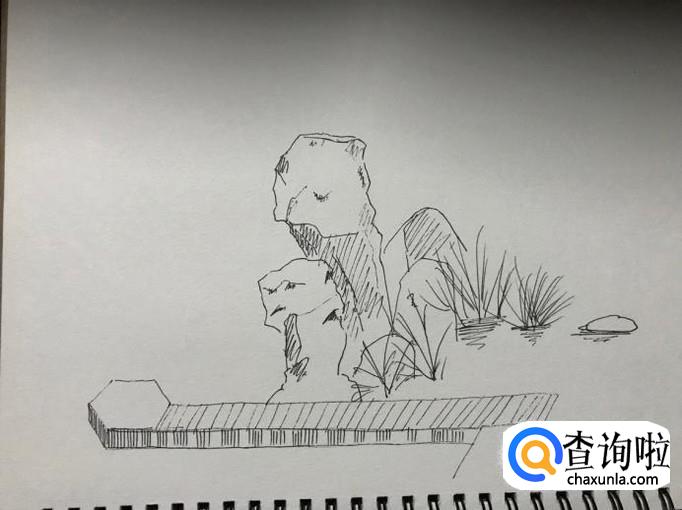 今天我们一起学习绘制山石水景速写,我们一起来根据以下步骤绘制这样有意境的速写吧。