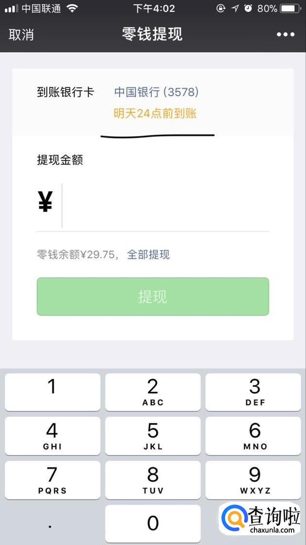 如果微信提现,只过一会儿没到账,不用太担心,可能系统或者银行繁忙,还没有处理,等待就好了,一般不会超过2小时的。提现说明写了当天提现,第二天23:59分前到账,不受节假日影响。